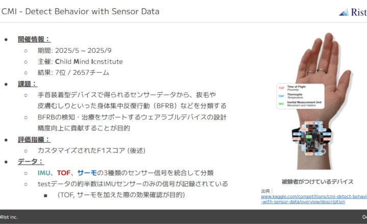 Rist所属のKaggle Grandmaster 石 圭一郎が、Kaggleコンペティション「CMI – Detect Behavior with Sensor Data」にて、個人で金メダルを獲得